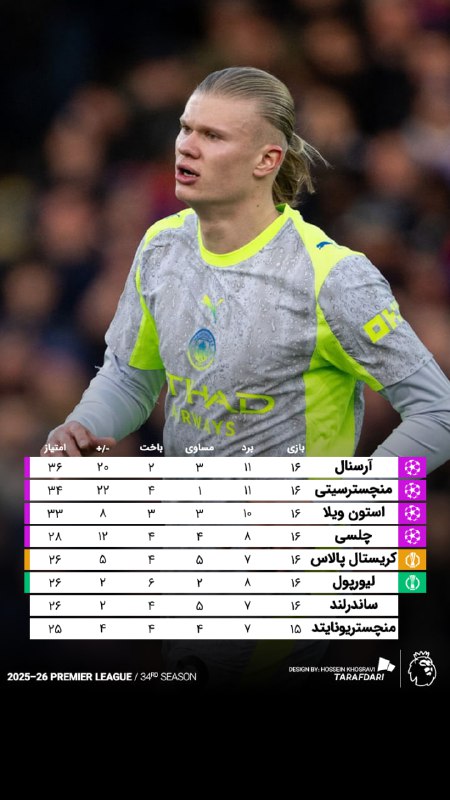 📊جدول رقابت‌های #لیگ_برتر_انگلیس پس از پایان دیدارهای امشب از هفته شانزدهم