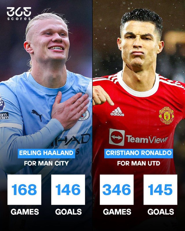 ارلینگ هالند با به ثمر رساندن ۱۴۶ گل برای منچسترسیتی، از رکورد ۱۴۵ گل کریستیانو رونالدو برای منچستریونایتد پیشی گرفت و نام خود را در تاریخ ثبت کرد
