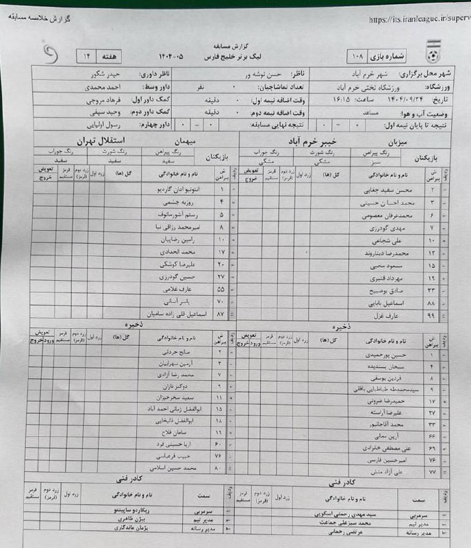 🏆#لیگ_برتر | ترکیب استقلال و خیبر / ساعت 16:15