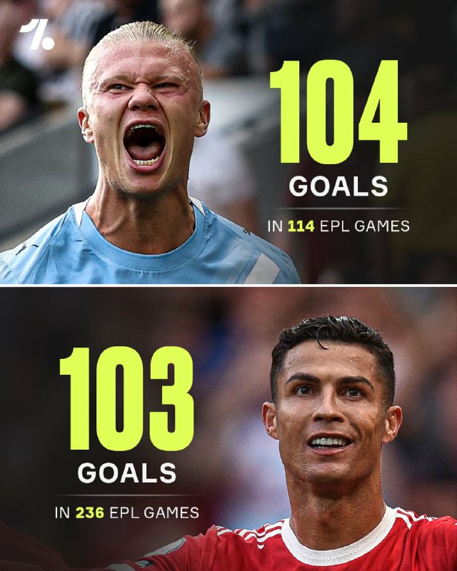📊 دیداری تاریخی برای بچه غول؛ ارلینگ هالند رکورد گلزنی کریستیانو رونالدو در لیگ برتر انگلیس را شکست