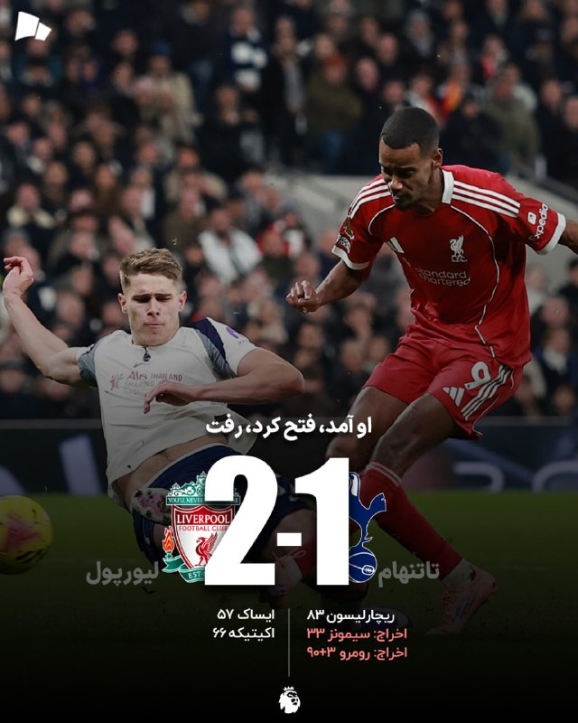 🏆 #لیگ_برتر_انگلیس | تاتنهام 1_2 لیورپول / ایساک آمد، فتح کرد و رفت
