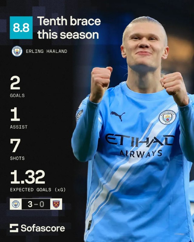 عملکرد مهاجم نروژی سیتیزین‌ها در بازی مقابل وست‌هم در عکس پیداست
