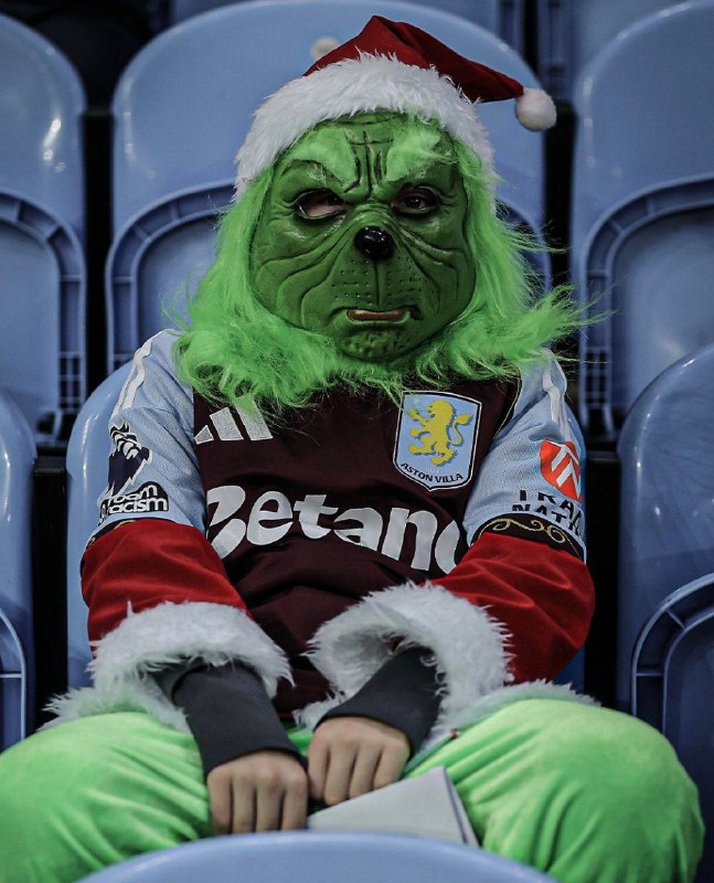 🎅 تصویری جالب از هوادار استون ویلا با پوشش متناسب با حال و هوای کریسمس پیش از دیدار با منچستریونایتد