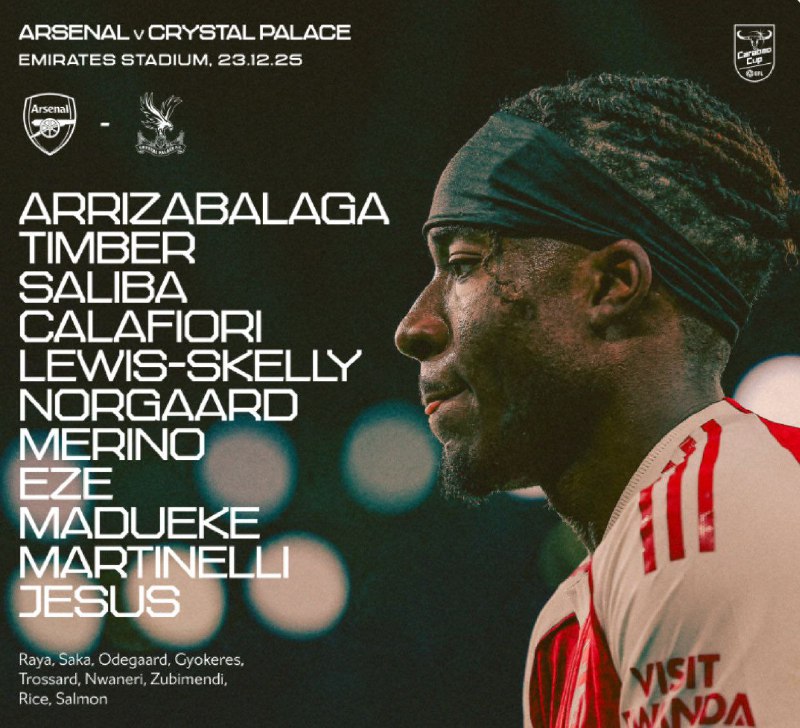 یک تیم کامل روی نیمکت توپچیها؛ 🏆 کارابائو کاپ | ترکیب آرسنال و کریستال پالاس / ساعت ۲۳:۳۰