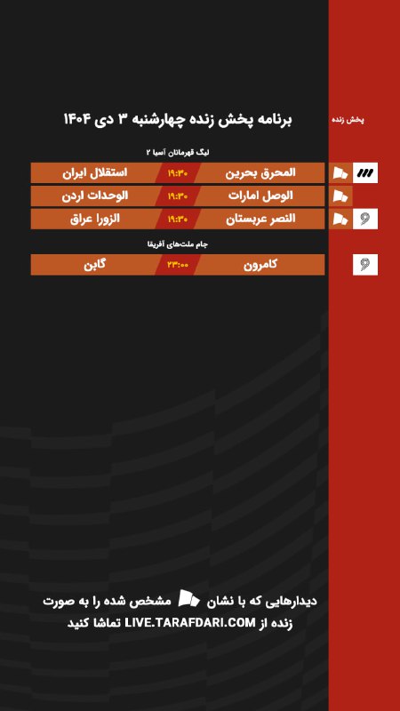 💥با پخش زنده طرفداری، هیچ دیدار حساسی رو از دست ندید!