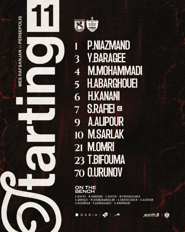 🏆 #لیگ_برتر | ترکیب پرسپولیس مقابل مس رفسنجان / ساعت ۱۶:۱۵