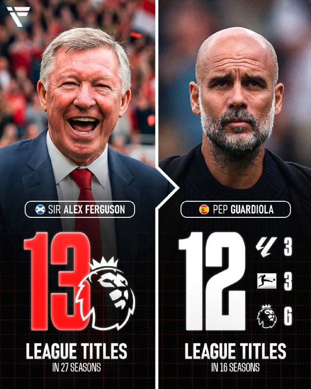 سر الکس فرگوسن و پپ گواردیولا تنها سرمربیانی هستند که موفق به کسب بیش از ۱۲ عنوان قهرمانی در ۵ لیگ معتبر اروپایی شدهاند
