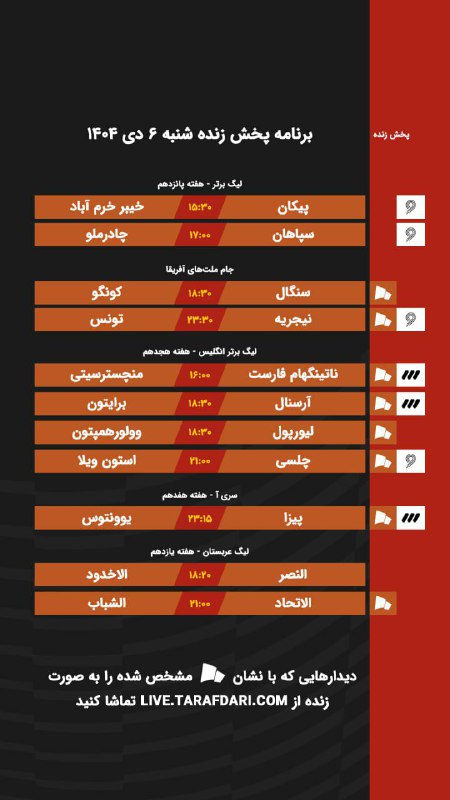 📌 برنامه پخش زنده شنبه ۶ دی ۱۴۰۴