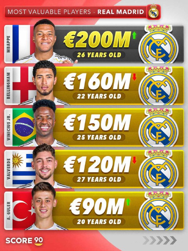 📊 ارزشمندترین بازیکنان رئال مادرید در سال 2025؛ آن‌که شایسته بود به صدر رسید