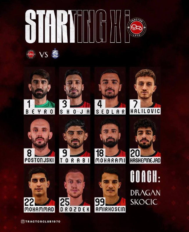 🏆#لیگ_برتر | ترکیب تراکتور مقابل ملوان / ساعت ۱۵:۰۰