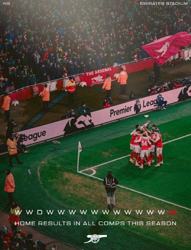 📊 آرسنال در این فصل در تمام بازی‌های خانگی خود شکست‌ناپذیر بوده است!