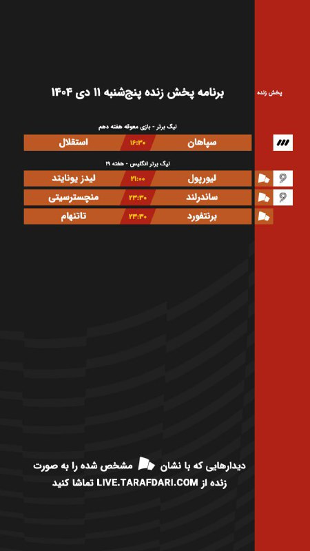 📌 برنامه پخش زنده پنج‌شنبه ۱۱ دی ۱۴۰۴