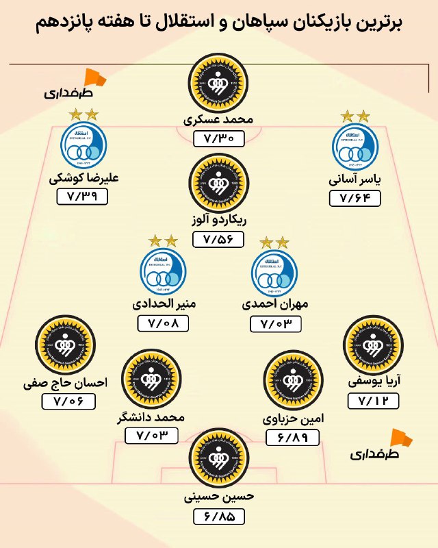 🔵🟡ترکیب منتخب برترین بازیکنان استقلال و سپاهان از نگاه طرفداری