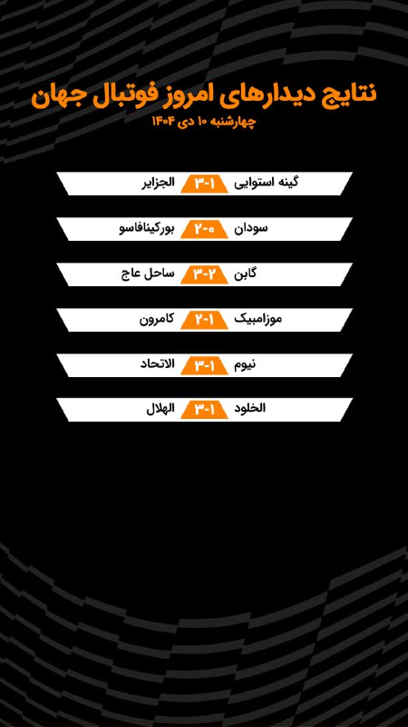 🔶 نتایج بازی‌های مهم امروز، 10 دی