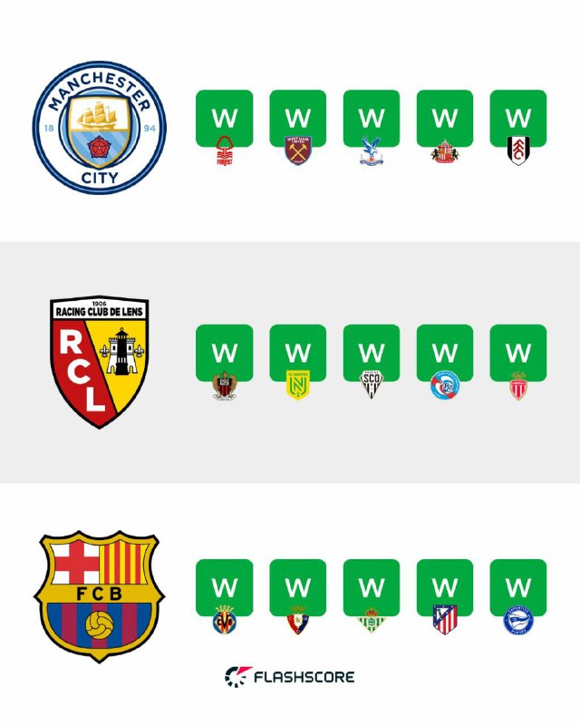 📊 تنها 3 تیم هر پنج بازی آخر خود در سال 2025 را با پیروزی پشت سر گذاشتند!