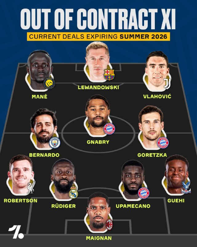 با حضور لواندوفسکی، مانه و مدافع رئال مادرید 🔶 تیم منتخب برترین بازیکنان آزاد فوتبال جهان در سال ۲۰۲۶