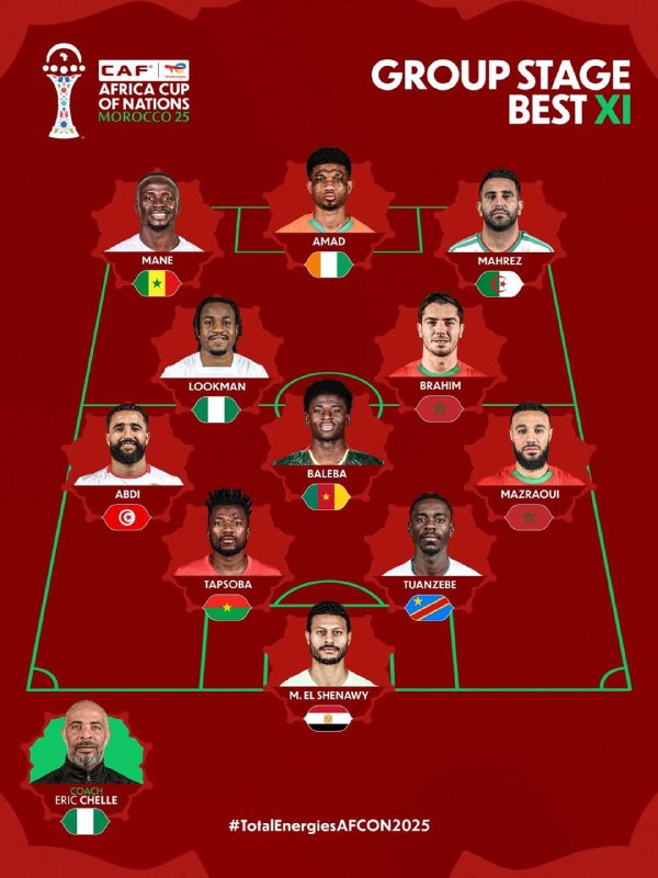 با حضور دو بازیکن منچستر و هافبک رئال 📊تیم برتر مرحله گروهی جام ملتهای آفریقا از نگاه صفحه رسمی مسابقات