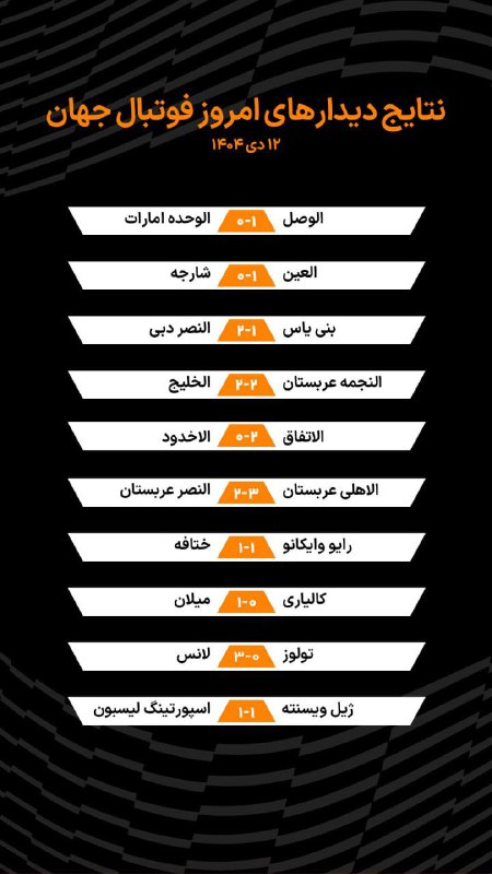 ⚽️نتایج دیدارهای امشب فوتبال جهان، ۱۲ دی ۱۴۰۴