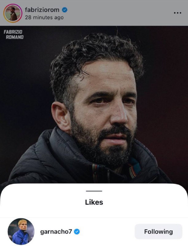 پس از آنکه فابریتزیو رومانو، خبر اخراج روبن آموریم از هدایت منچستریونایتد را در صفحه اینستاگرام خود منتشر کرد، گارناچو این پست را لایک کرد