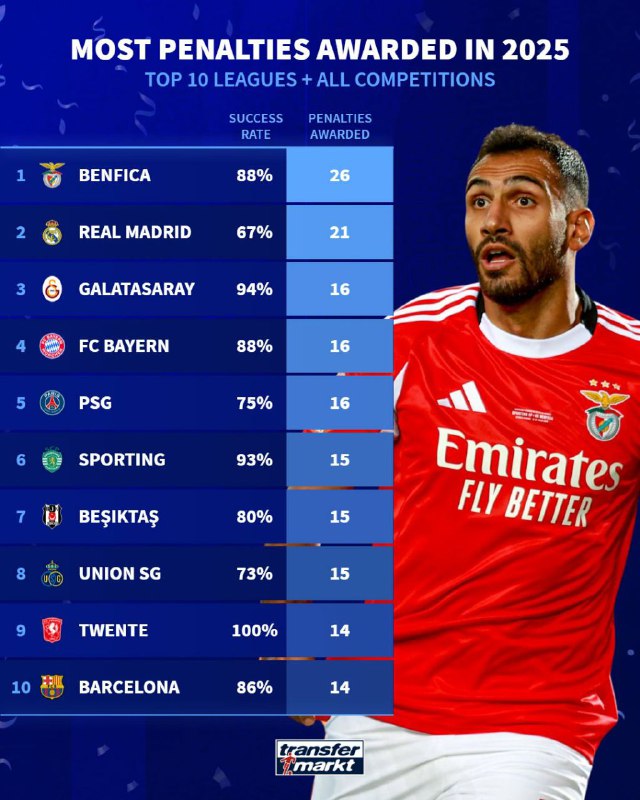 📊 بیشترین پنالتی کسب شده برای یک تیم در سال 2025