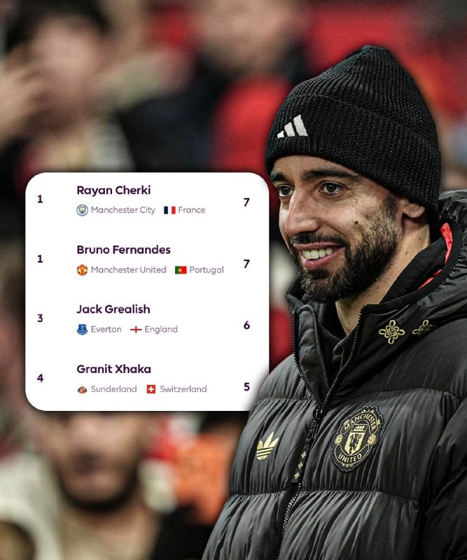📊 برونو فرناندز با وجود غیبت در ۳ بازی اخیر منچستریونایتد به دلیل مصدومیت، همچنان صدرنشین جدول بهترین پاسورای لیگ برتر انگلیس است!