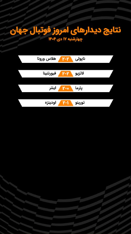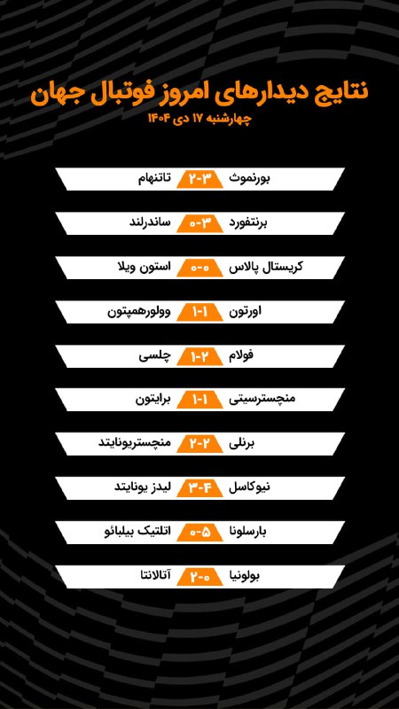 🔶 نتایج بازیهای مهم امروز، 17 دی