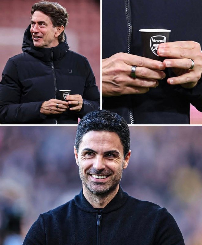 😁 وقتی توماس فرانک از لیوانی با لوگوی آرسنال آب میخورد