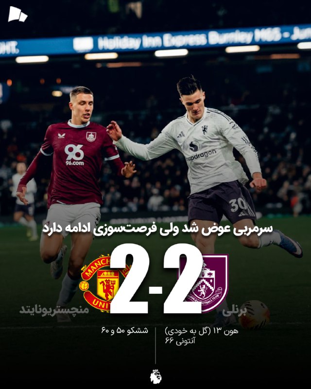 🏆 #لیگ_برتر_انگلیس | برنلی 2_2 منچستریونایتد / توقف شیاطین مقابل تیم ته جدولی!