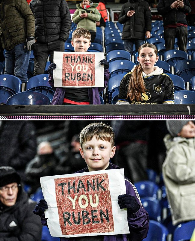 🙏 هوادار خردسال منچستریونایتد در جریان دیدار این تیم با برنلی با بنری با نوشته «ممنون روبن» از زحمات سرمربی قبلی شیاطین سرخ تقدیر کرد
