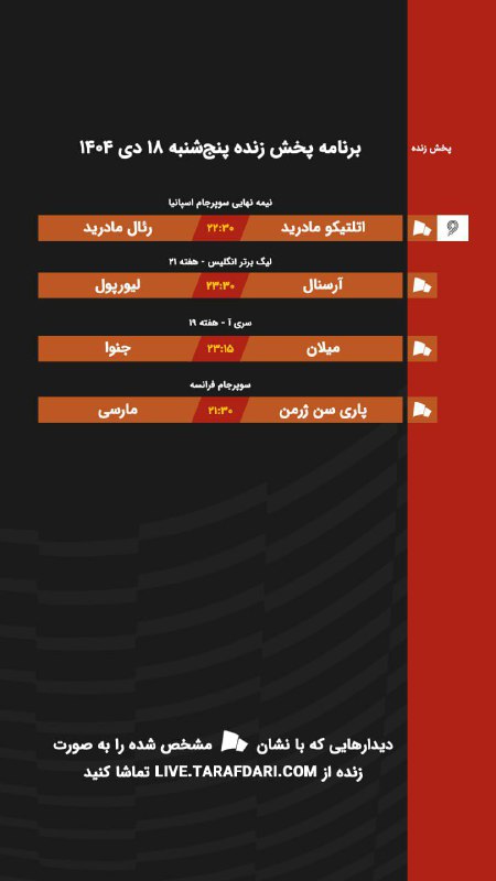 📌 برنامه پخش زنده پنج‌شنبه ۱۸ دی ۱۴۰۴