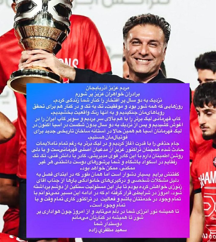❗️سعید مظفری زاده از مدیریت عامل باشگاه تراکتور استعفا داد
