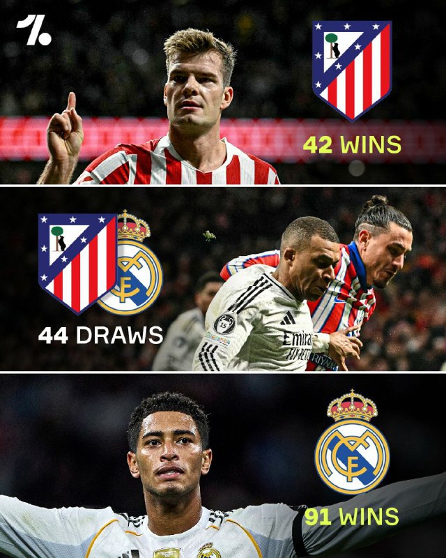 📊 آمار تقابل‌های اتلتیکو مادرید و رئال مادرید؛ کهکشانی‌ها با اختلاف برتر هستند!