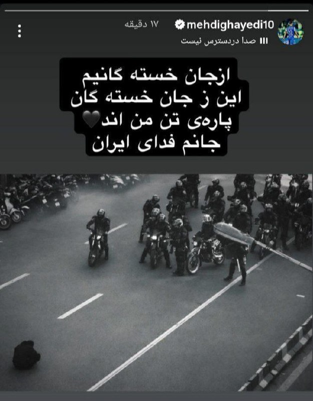 📱 واکنش مهدی قائدی به اعتراضات اخیر مردم: جانم فدای ایران!