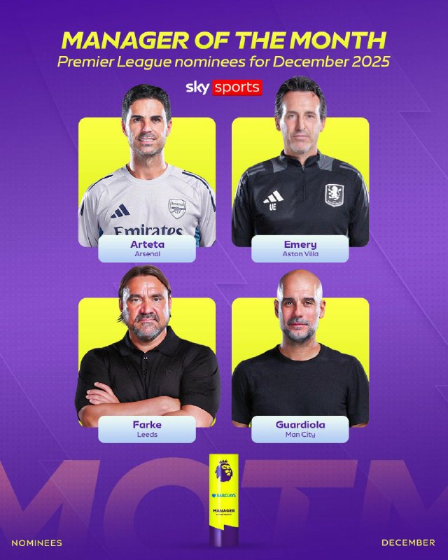 🏅نامزدهای بهترین سرمربی ماه دسامبر لیگ برتر انگلیس