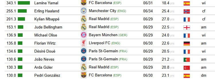 📊 10 بازیکن ارزشمند جهان از نگاه CIES؛ آردا گولر بالاتر از پدری!