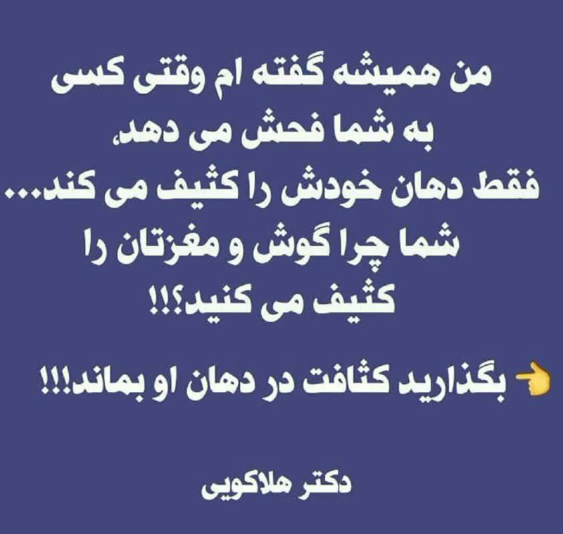 وقتی کسی به شما فحش می دهد، فقط دهان خودش را کثیف می کند ... شما چرا گوش و مغزتان را کثیف می کنید ؟!!!