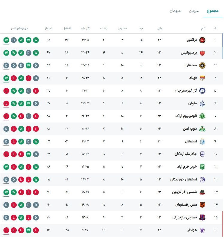 🇪🇺جدول لیگ برتر در پایان هفته بیست و سوم
