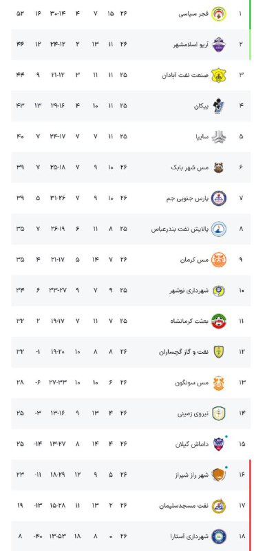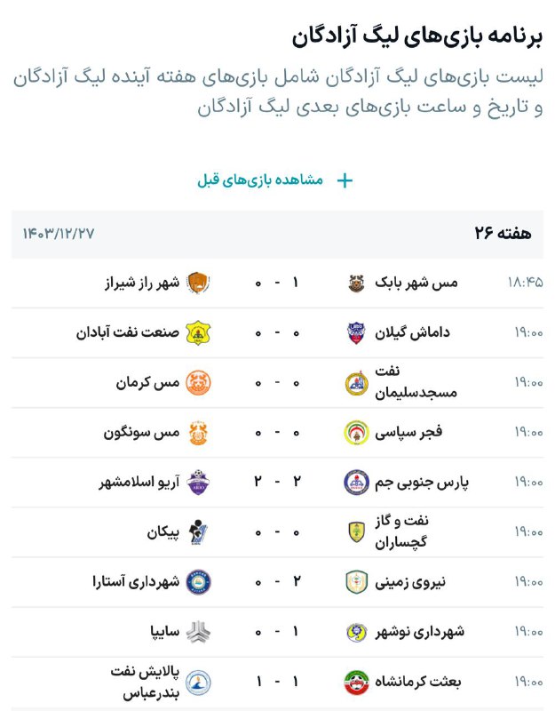 نتایج و جدول لیگ آزادگان در پایان هفته بیست و ششم