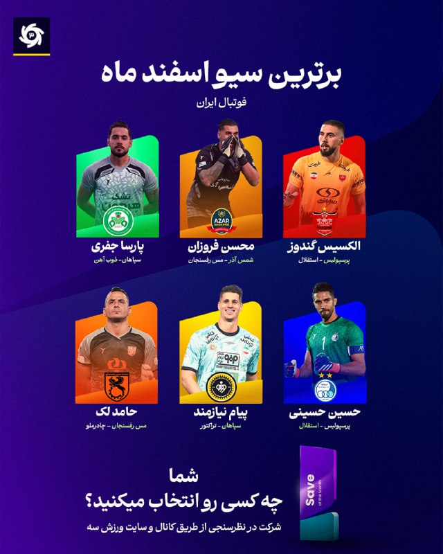 ⬇️به نظر شما کدام یک از این 6 سیو، بهترین واکنش مسابقات اسفند ماه فوتبال ایران بوده است؟ در صفحه اصلی ورزش سه در نظرسنجی بزرگ ما شرکت کنید و به گزینه خود رای دهید.