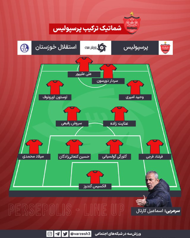 🔴 ترکیب پرسپولیس برابر استقلال خوزستان
