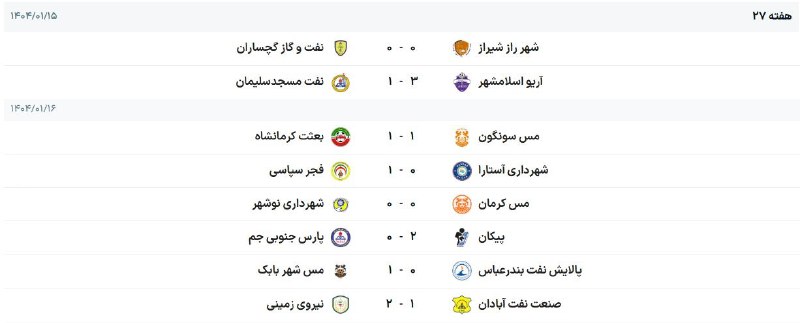 نتایج و جدول لیگ آزادگان در پایان هفته 27