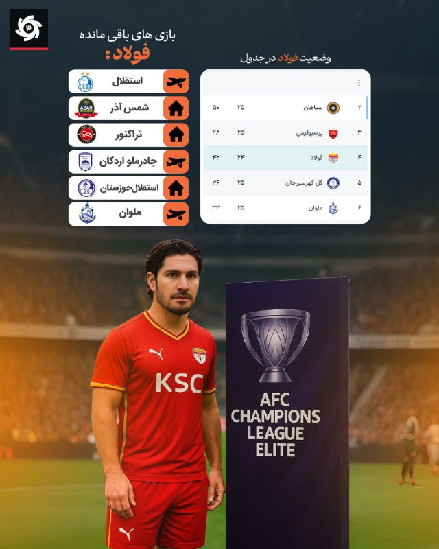 🔵ترکیب استقلال برابر فولاد