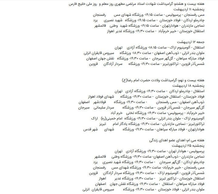2 هفته پایانی همزمان؛ 🇪🇺 برنامه هفته 28 تا 30 لیگ برتر اعلام شد