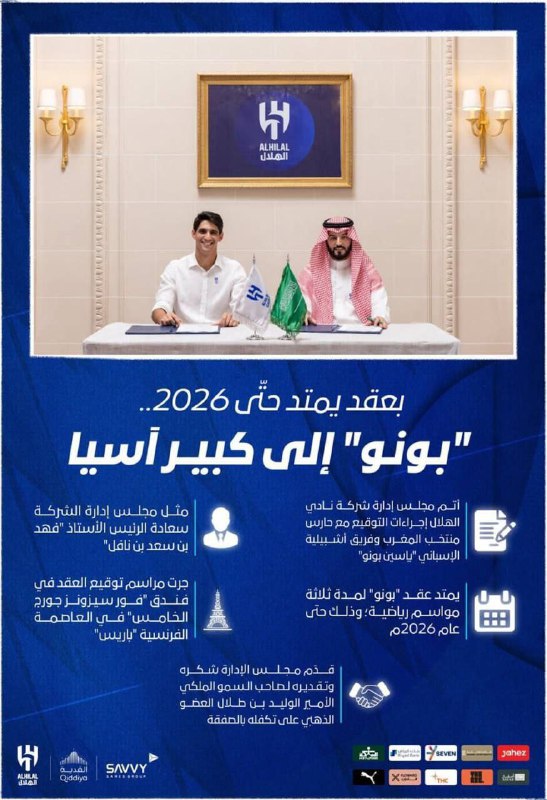 🇸🇦✔️قرارداد یاسین بونو با باشگاه الهلال تا ۲۰۲۶ تمدید شد