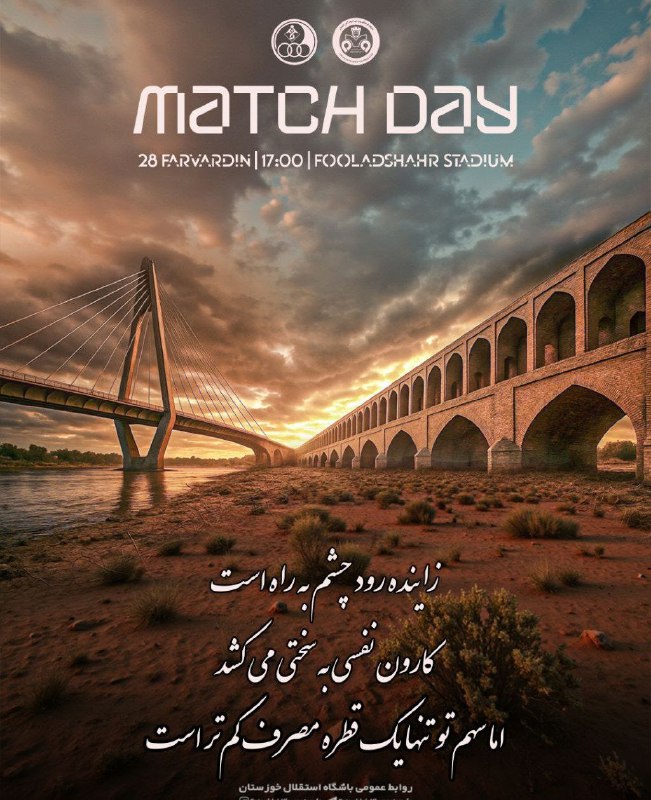 🔵 پوستر دردناک باشگاه استقلال خوزستان برای دیدار امروز برابر ذوب آهن با اشاره به بحران بی‌آبی از زاینده‌رود و رود کارون