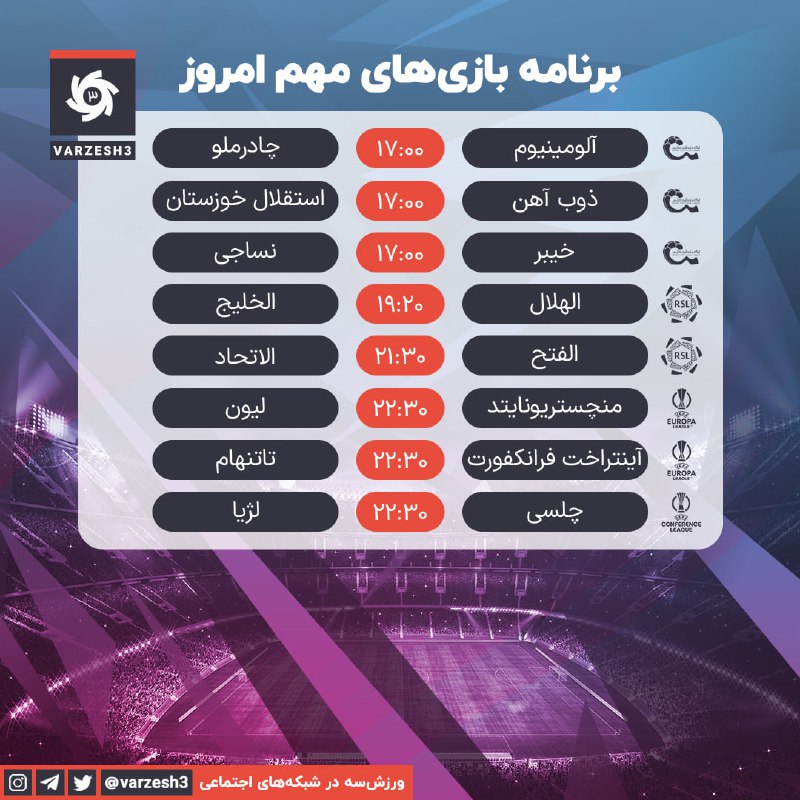 📺 برنامه مهمترین دیدارهای فوتبال امروز
