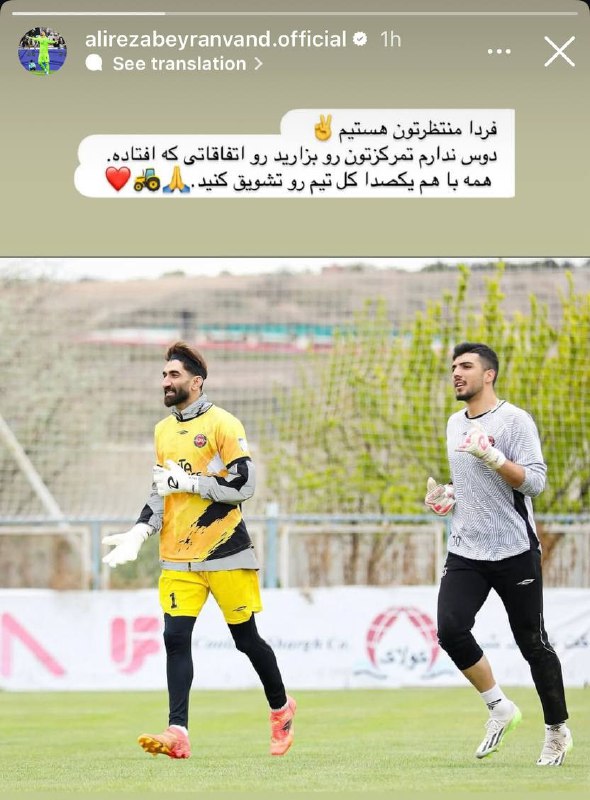 🔴پیام علیرضا بیرانوند برای هواداران تراکتور پیش از مسابقه فردا
