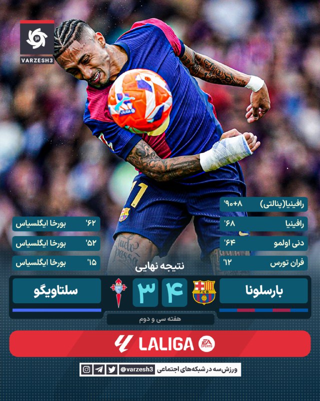 ضدحال در روز رویایی؛☹️ در این فصل ۳ بازیکن برابر بارسلونا هت تریک کرده اند اما در نهایت با شکست زمین را ترککرده اند.