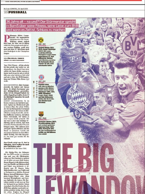 لواندوفسکی در مصاحبه‌ای مفصل با بیلد پس از صعود بارسا برابر دورتموند از جاه‌طلبی‌های بزرگش در سال‌های پیش رو گفت.