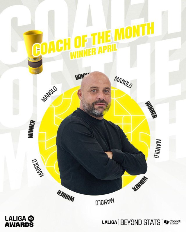 🌏مانولو گونزالس سرمربی اسپانیول به عنوان بهترین مربی ماه لالیگا انتخاب شد.